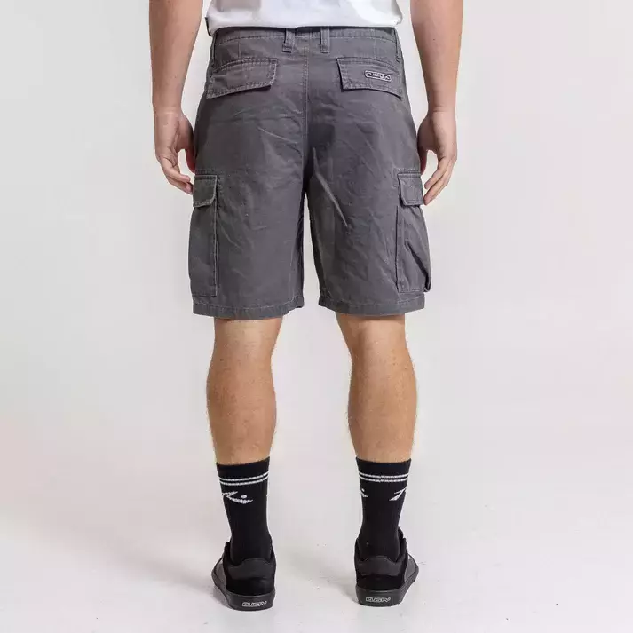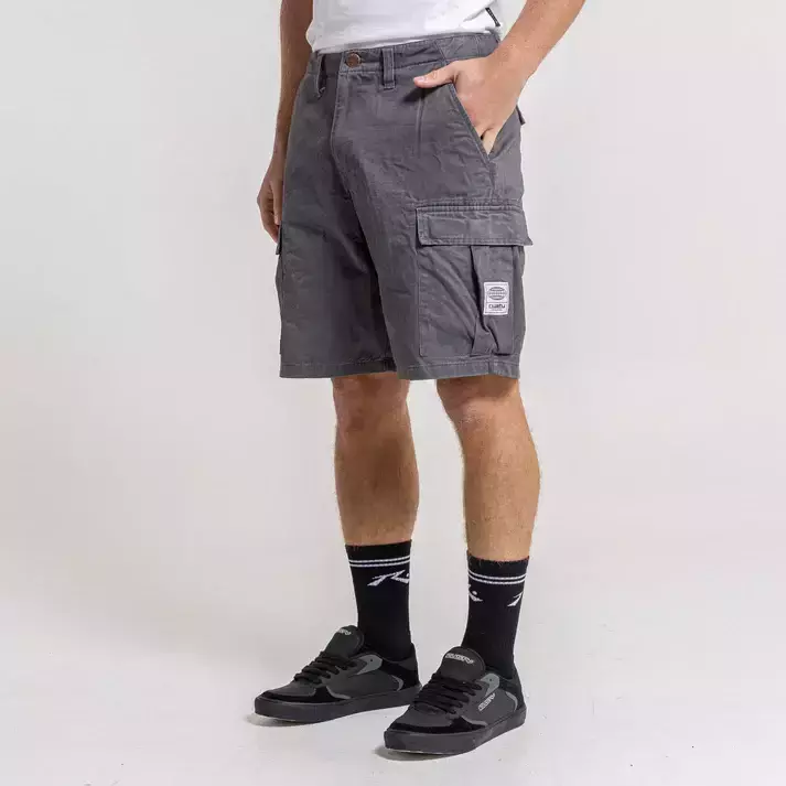 Bermuda cargo Rusty Rippa Charge Ws color carbón. Confeccionada en 100% algodón sarga, calce loose fit y múltiples bolsillos funcionales. Ideal para un look urbano y cómodo.